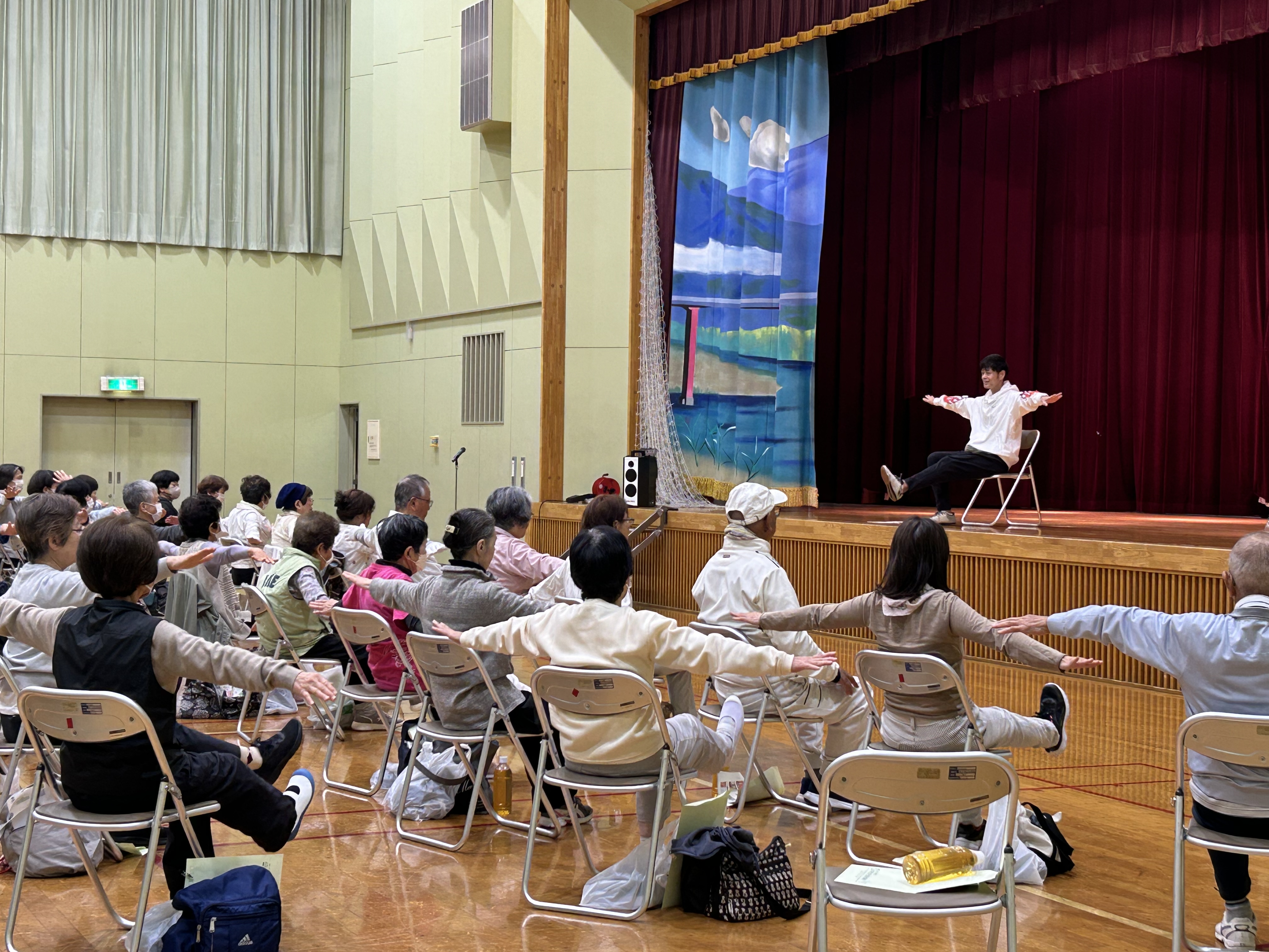 今年度の唐子支部健康講座は、NHKテレビ・ラジオ講座でおなじみの鈴木大輔先生にお越しいただきました。鈴木先生のお話がとてもわかりやすくて楽しいので、あっという間の一時間半でした。最後はみなさんでラジオ体操を行って、心も体も気持ちよくリフレッシュできました。