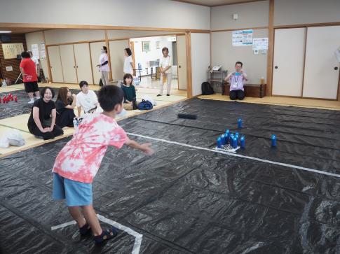 子どもたちと保護者様、社協唐子支部の役員も加わり三世代で世代間交流を楽しむことができました。モルックはフィンランド発祥のスポーツですが、まだあまり馴染みがないかも知れません。今回もモルックを初めて体験する子がほとんどでしたが、東松山市役所のスポーツ推進員の方々が、楽しく分かりやすく教えてくださったので、すぐにルールを覚えて大盛り上がりのモルック体験となりました。