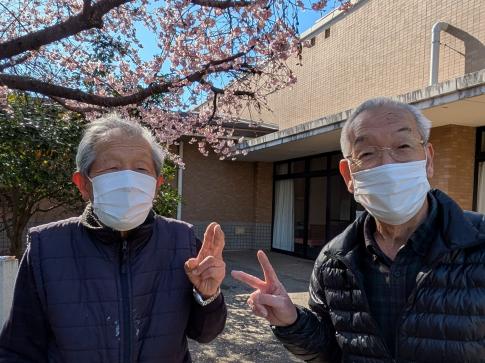 エリア農園からの帰り道、早咲きの桜で花見をしながら一足早く春を感じました。